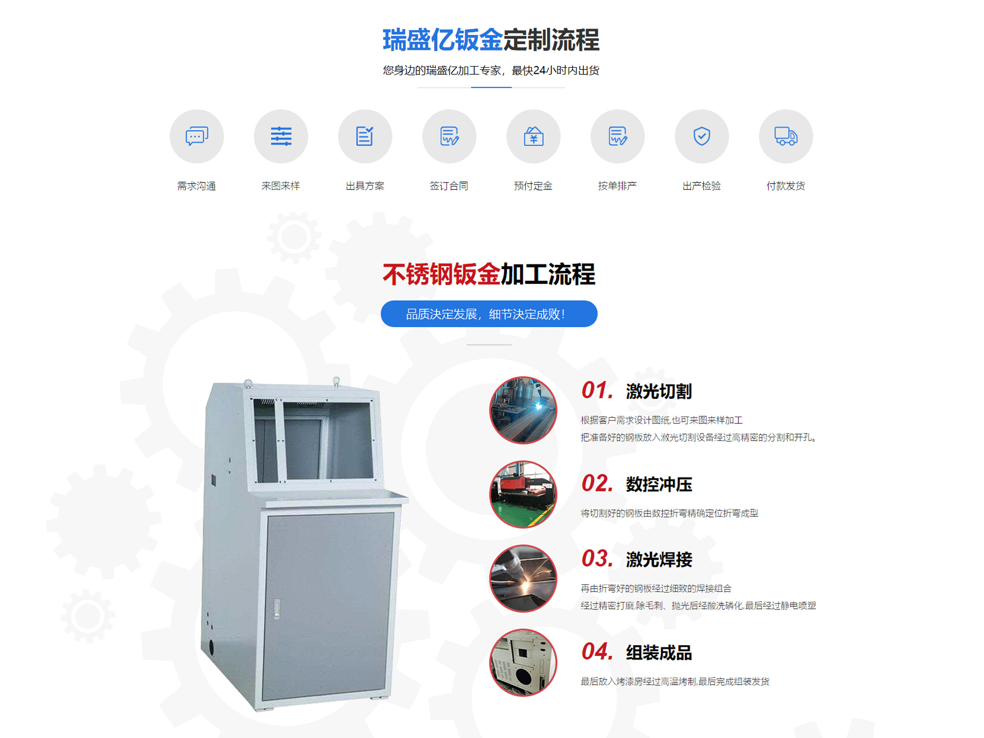 瑞盛億金屬制品(廈門(mén))有限公司是由原廈門(mén)市鼎利達(dá)工貿(mào)有限公司(行業(yè)20年經(jīng)驗(yàn))基礎(chǔ)上(管理團(tuán)隊(duì),骨干員工均不變)新成立的一家專(zhuān)門(mén)從事精密鈑金生產(chǎn)的企業(yè),公司主營(yíng):鈑金、機(jī)柜箱、設(shè)備機(jī)架、不銹鋼制品等。本公司將以誠(chéng)信、專(zhuān)注、品質(zhì)及時(shí)為客戶(hù)創(chuàng)造更具價(jià)值的產(chǎn)品,為客戶(hù)創(chuàng)造價(jià)值,贏(yíng)得客戶(hù)的信任和支持,讓客戶(hù)和員工滿(mǎn)意是本公司可持續(xù)發(fā)展的根本保證,我們將秉承這一理念貫穿整個(gè)生產(chǎn)、經(jīng)營(yíng)活動(dòng)中,保持與客戶(hù)長(zhǎng)期、持續(xù)的合作。